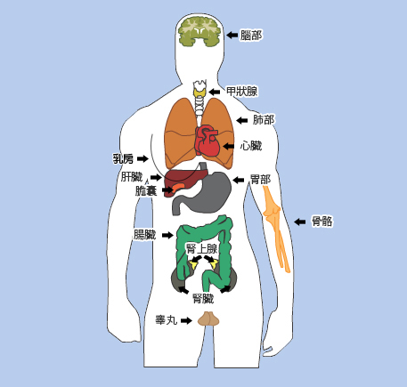骨扫描 骨扫描对肿瘤细胞的扩散极为敏感,能够准确侦测到骨骼极细微的病变。人体骨骼的新陈代谢需要磷质。活动量愈高的骨骼 (新陈代谢率愈高),需要磷质愈多。例如当肿瘤细胞蔓延到骨骼,会破坏骨骼的正常组织。人体骨骼会尽力修补被破坏的地方,因此对磷质的需求就会较正常骨骼代谢所需为多。不同的癌细胞对骨骼的侵蚀速度不同,骨骼的修补速度亦有异。骨扫描能够侦察到骨骼新陈代谢极细微的变化,即使在扫描影像中,骨骼结构未被明显破坏之前,已能探测到早期癌细胞对骨骼的侵蚀。及早发现对控制肿瘤细胞的蔓延非常重要。 放射核素治疗 Strontium-89/ Radium-223癌症骨骼转移放射核素治疗 放射核素治疗特别针对在骨骼组织中的癌细胞,包括已知及未知的部位。放射核素治疗不单可以解除或减轻癌细胞入侵骨骼所造成的痛楚,而且能够遏止癌细胞侵蚀正常骨骼的进度。在已接受过治疗的病人中,患者感受到不同程度的止痛功效。其中大部份感到痛楚明显减轻,甚至完全没有骨痛。这种癌症治疗对人体的副作用极少。 肝脏