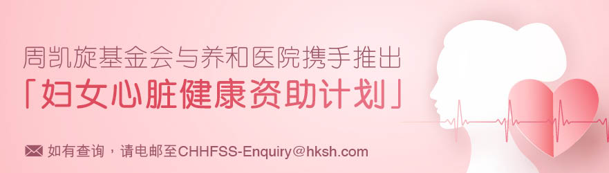 * 病人所支付的金额已包括住院、手术室、验血、手术用的仪器、材料,心脏动脉支架及心瓣膜等费用。 价格因应病人情况而定,以上价格只供参考。 2021年12月14日 周凯旋基金会与养和医院携手推出「妇女心脏健康资助计划」 周凯旋基金会(基金会)与养和心脏科中心合作推出「妇女心脏健康资助计划」,基金会于2023年向院方拨捐港币500万元,以资助女性病人进行心脏检查及在有需要时接受冠状动脉支架植入术。 有需要的女士可经由医生转介申请相关资助。养和心脏科中心医生团队会就申请人的身体状况、经济状况、及术后生活质素等因素作出评估及审批。 为支持周凯旋基金会「妇女心脏健康资助计划」,养和医院及参与计划的医生会减收住院费及医生费;基金会则资助诊费(术前2次及术后1次)及术前指定检查费,而门诊处方的口服药物则由病人自费。如需进行冠状动脉支架植入术,病人则需支付港币4万元及住院期间膳食费用和处方的口服药物费用,余下所有住院开支则由基金会资助。 如有查询,请电邮至 CHHFSS-Enquiry@hksh.com |
