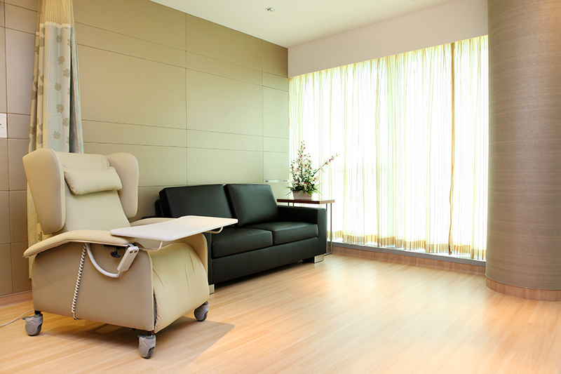 本院33、35、36及37樓均設有私家房,地方寬敞。病室特設落地玻璃,環迥飽覽跑馬地開揚景觀。自然光線映入眼簾,令室內更見柔和;兩層式窗簾,既能阻擋陽光,亦無礙病人欣賞窗外景觀,讓病人在房裡可以安心養病,輕鬆接受治療。樓層特設特大等候區,以供訪客使用。